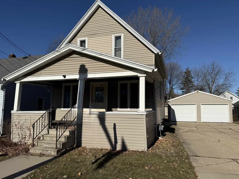 Welcome home! Why pay rent when you can own this charming 1 1/2 story home. Enjoy the spacious kitchen with custom maple cabinetry, breakfast bar, and updated countertops that opens to a bright living and dining area-ideal for gatherings. Retreat upstairs to 2 inviting bedrooms (one walk-through) with beautiful hardwood floors, custom woodwork, and ample closets. Home also boasts a ceramic tile main floor full bath. Out find a fenced yard, front porch and oversized 2-car garage. Convenient location close to shopping schools & highways. Short walk to the river & downtown. Tenant-occupied. Showings start 11/17. Call today for your private showing.