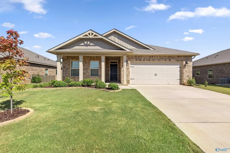 Welcome to this 4BR/3BA bungalow with an open floor plan and 2-car garage in The Links at Canebrake. Just minutes to I-65 and Hwy 72, the community offers a pool, cabana, and playground. Inside, three bedrooms, two baths, a large storage closet, and laundry room greet you before opening into the bright main living space with vinyl plank flooring, crown molding, recessed lighting, and a cozy gas fireplace. The kitchen features a granite island, Whirlpool appliances, walk-in pantry, and dining area. The isolated primary suite includes a walk-in closet, quartz counters, soaking tub, and separate shower.