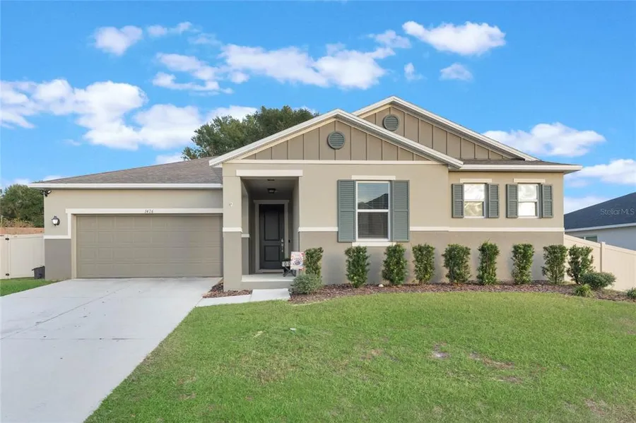 NEWER HOME ON ALMOST 1/3 ACRE! ASSUMABLE LOAN AT 3.5% INTEREST! This does not come around often - a 2022 home with a HUGE FENCED-IN YARD. The home features a lovely OPEN CONCEPT floor plan and bright color scheme, with the large kitchen equipped with ample white cabinetry, GRANITE countertops, cool gray backsplash, and STAINLESS-STEEL appliances. There is a large separate dining space, perfect for entertaining, and a spacious living area with views out to the backyard! The massive primary suite features DUAL WALK-IN CLOSETS, dual sink vanity, and tiled walk-in shower. There are three guest bedrooms, each with their own large closets providing plenty of storage space! The guest bathroom has an oversized vanity with makeup desk and tub. There is also a huge laundry room with tons of space to customize to your preferences! Stepping outside, you have a large COVERED PATIO overlooking your yard, perfect for enjoying morning coffee or taking in the wonderful Florida weather. Legacy Hills is a quaint community in a PRIME LOCATION, with easy access to 429, 441/OBT, and numerous shopping, dining, and entertainment destinations such as Wekiwa Springs State Park, Downtown Mt. Dora, Lake Apopka, and more! Come see this home before it is GONE!