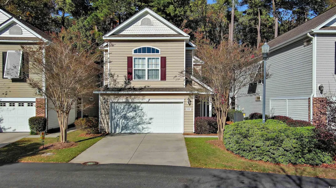 Rare opportunity to own one of the very few St. Bart plans ever built in the Cottages at Farrow Parkway in Market Common. This beautiful raised beach home has been a barely lived in second home since it was built and feels exceptionally fresh. It backs up to a protected conservation area that provides a private wooded view and a quiet setting that is rarely available this close to Market Common. The main level of this plan features an inviting flow with wood floors, a spacious living room, dining room and a well appointed kitchen with granite counters, stainless appliances, maple cabinetry and a combined laundry and pantry room. A screened porch overlooks the conservation area and offers a peaceful place to enjoy morning coffee or relax in the evening. All three bedrooms are located on the second level. The primary suite includes a sitting area, a large walk in closet and a bathroom with double vanities and a walk in shower. The two guest bedrooms are generous in size with walk in closets and natural light. The raised two car garage is heated and cooled by a separate heat pump and includes shelving for organization. Residents of the Cottages at Farrow enjoy a community pool, tree lined streets and walkability to Market Common shops, dining, parks and ball fields. You are also a short golf cart ride to the beach and minutes from the Myrtle Beach International Airport and local medical facilities.
