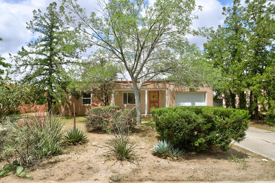 Charming and Thoughtfully Updated Home in the Desirable UNM Area! This 2-bed, 1-bath home in a quiet neighborhood offers a beautifully tiled kitchen with custom oak cabinets, an updated bathroom, and a bonus room for a home office or study. The large lot has native landscaping front & back, a lovely portal with shaded patio and plenty of garden space. Additional updates: newer windows with custom fabric shades, a TPO roof, upgraded electrical system, and a centrally ducted furnace and AC. One car garage with additional storage, Centrally located minutes from Nob Hill, UNM, hospitals, shopping and dining, with quick access to I-40 and public transportation. Don't miss out on this gem of a property, schedule your viewing today!
