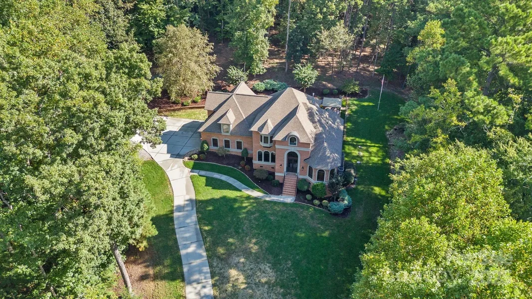 Welcome to a beautifully maintained full-brick home with seasonal views of Lake Norman, set on nearly 2 peaceful acres. From the moment you pull in, the long driveway, mature trees, and thoughtful landscaping create a sense of privacy and calm that makes this property feel special. Inside, you'll find quality details throughout-3-piece crown molding, wide baseboards, wood floors, built-ins, plantation shutters, and a warm wood-planked vaulted ceiling in the study. The main-level primary suite offers a comfortable retreat with a tray ceiling and a relaxing, spa-like bathroom. The kitchen is both functional and inviting, featuring classic cherry cabinets newly refinished in white for a fresh, clean look. Granite counters, a stone backsplash, stainless steel appliances, soft-close drawers, and a Thermador gas cooktop make it a great space for cooking and gathering. The kitchen opens to the great room, where a gas fireplace adds a cozy touch. Upstairs, three additional bedrooms provide plenty of room for family or guests. There's also a spacious bonus room with a wet bar and a fully set-up theater room-perfect for quiet evenings in, movie nights, or celebrations. Outside, the saltwater pool, large patios, and surrounding green space offer plenty of places to relax or entertain. The property borders 16 acres of greenway, giving you extra privacy and room to enjoy nature. Two walk-in storage areas add convenience for everyday living. Located just minutes from schools, shopping, dining, lake access, Lake Effects Boat Club, and major routes like I-77 and Hwy 16, this home offers a quiet setting without being far from what you need. If you're looking for a home that's well cared for, comfortable, and surrounded by natural beauty-this one is truly worth a visit. To help make someone's season a little brighter, the sellers are offering a 2% credit toward the buyer's closing costs with an acceptable offer.