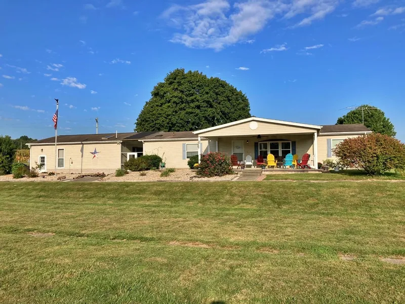 Located on 3.812 acres +/- in Crane Village, this manufactured home includes living room that is open to dining room and kitchen with island, pantry, and appliances, office area, split floorplan includes Master Suite with walk-in shower, 2 additional bedrooms and bath. Large 2-car garage has kitchenette, full bathroom, and heated floor. Relax on the front porch, enclosed breezeway, or on the back patio with built in seating.