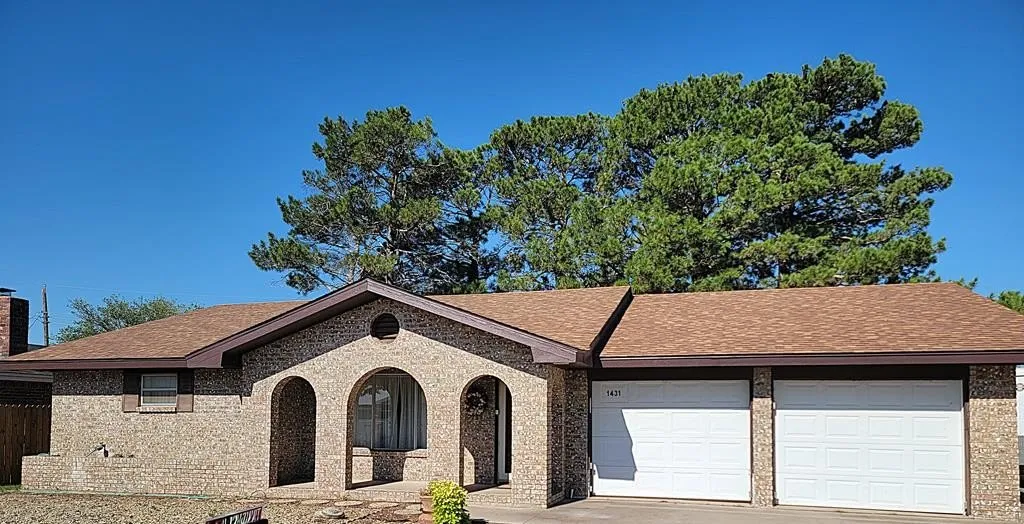 SUBSTANTIAL PRICE IMPROVEMENT!!! Brick home with 3 bedrooms, 2.5 bathrooms, living room with specialty ceiling and built-in bookshelves, eat-in kitchen with built-in hutch & pantry, large utility room with good storage, 3rd bedroom with half bath could be used as office, 2 bedrooms have en-suite full bathrooms, fenced backyard with storage building and wired shop, 2 car garage and additional parking pad, new roof installed July 30, 2025. Call agent Michael Hammit to schedule your tour, 325-733-3913. PRICED TO SELL!!