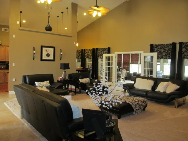 OUTSTANDING CUSTOM BUILT HOME! The designer details on this home are top of the line. Offering 4300 SQ FT. with vaulted ceilings, grand foyer, fully equipped kitchen with lovely cabinetry, pantry, and open to a breakfast area. Spacious great room includes fireplace. Two master suites with private bathrooms, sunroom that adjoins to patio. The rec room is perfect for a master / in-law suite with private bath and private entrance. Many extras: porcelain tile flooring, ornate crown molding, architectural columns, custom blinds, large walk-in-closets with built in cabinetry, oversized 4 car garage with stairs to floored storage plus more. Outside you will find a 2 car detach garage, professional landscaping completely around home, circle paved driveway, and all sitting on 2 acres. This is truly a showplace with details throughout.