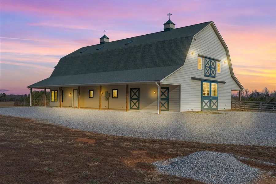Dream of living in a picturesque custom-built barndominium. Drive down the long driveway to see your horses in the beautiful custom-built self-watering stalls with two paddocks, a washdown area, and a tack room. Relax on the screened-in porch overlooking the stunning 21.835 acres of lush land with panoramic mountain views and picture-perfect sunsets. Enjoy a jacuzzi tub, separate shower and built in drawers in the upstairs bathroom, large tiled walk-in shower in the big main floor bathroom, great room, dumb waiter, large laundry /utility room and more custom touches. A 20kw generator hooked to a 400-gallon propane tank provides peace of mind. Whether you're an outdoor enthusiast or enjoy rural life, this location is ideal for creating a personal sanctuary or starting a small farm with space for gardening, livestock, and recreation.