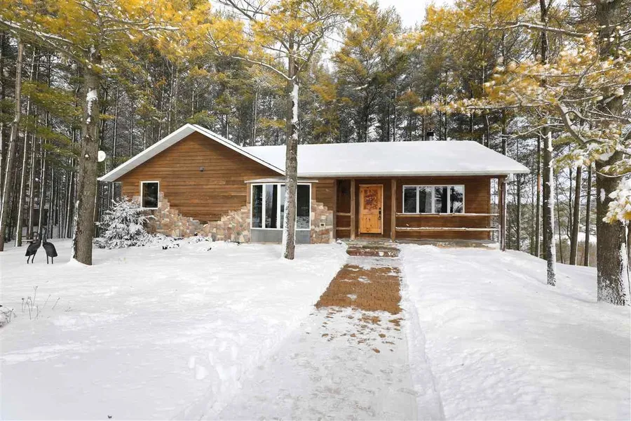 River Front Property with 306+/- feet of frontage on the Branch River! SMART Home Features and RUSTIC tranquility in this 2 Bedroom, 2 Bath custom ranch home with over 1900+/- SF of living space situated on 11.35+/- acres. Updated Bathroom with LARGE walk-in tile shower. Hickory cabinets in the kitchen, gas F.P. with views galore! Some finished LL. Detached garage that includes a recent owners getaway room in the extra garage area that is heated and has its own entertainment area. Outside find paver patio walkways, a large deck in the back that overlooks the woods and the river, as well as a bridge that leads out to a cottage getaway in the woods. Drive down the long, private driveway to your escape!