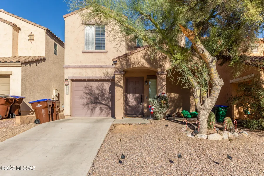 Welcome home to this beautifully updated two-story residence in the highly desirable community of Rancho Sahuarita! This charming property is truly move-in ready, featuring freshly painted interiors, gorgeous tile and laminate flooring throughout the main living areas, and an inviting layout perfect for everyday living and entertaining. Upstairs, you'll find three spacious bedrooms and two full bathrooms, including a comfortable primary suite with ample closet space. The convenient downstairs half bath is ideal for guests, and the 2-car tandem garage provides plenty of parking and extra storage. Step outside to enjoy your private backyard—perfect for summer BBQs, gatherings with family and friends, or simply relaxing under the mature shade trees. The front yard also enjoys beautiful shade, adding to the home's welcoming curb appeal. Located in the coveted Rancho Sahuarita community, residents enjoy an incredible variety of amenities including multiple parks, pools, fitness centers, splash pads, walking trails, playgrounds, and year-round activities and events. This is a wonderful opportunity to own a well-maintained, move-in-ready home in one of the area's most vibrant and family-friendly neighborhoods!