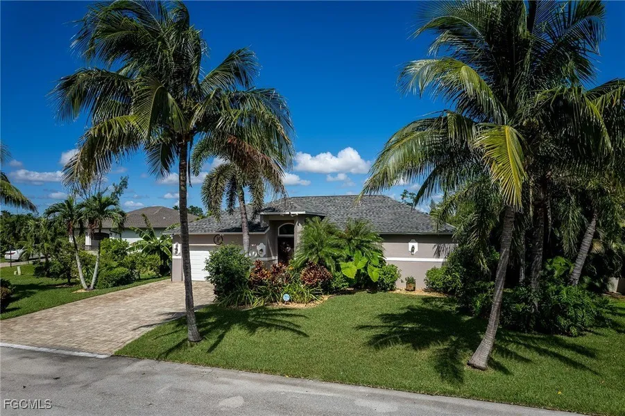 Rarely available and ideally tucked away on a quiet cul-de-sac, this 3-bed, 2-bath home rests in the deed-restricted community of Hampton Lakes. With a wide lake as your backdrop, framed by lush tropical landscaping and swaying palms, you'll enjoy exceptional privacy - no neighbors behind and unchanging lake and nature views. The open-concept interior features a newer 2018 roof and soaring cathedral ceilings that enhance the open, airy feel. The kitchen is designed for everyday living with a pantry, built-in desk, and a reclaimed wood accent wall at the breakfast bar that brings a touch of warmth and character. The primary suite features dual sinks and a walk-in shower, while a pool bath provides easy access for guests enjoying the outdoors. Outdoors offers a spacious screened lanai with a tongue-and-groove ceiling that frames the sparkling pool, while an exterior deck offers the perfect setting for al fresco dining overlooking the lake. Both spaces combine to create a private retreat designed for Florida living at its best. This rarely available gem combines comfort, natural beauty, and a sense of discovery-all in the quiet setting of Hampton Lakes, one of Fort Myers' best-kept secrets.