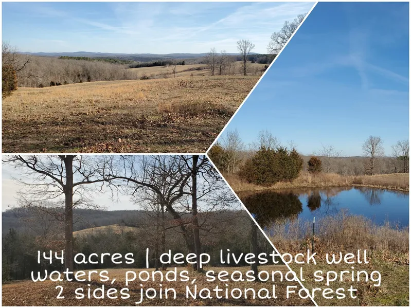 Attention farmers, home builders, and hunters. Take a serious look at this 144 +/- acre rolling farm just minutes from Bull Shoals Lake and joining thousands of acres of National Forest that also joins Corp of Engineers land. With a number of breathtaking building sites, barbed wire perimeter and high tensile electric cross fence, ponds, seasonal spring and creek, automatic waterers, pipe corral and squeeze chute, this is the perfect place for you and your livestock. Approximately 75 acres are open pasture with the remainder in timber. You have your choice of building sites from tucked in and private to wide open with long distance views, or both! Power on site! Property is just a minute away from the Little North Fork River on Corp of Engineer Ground for your spring and summer fishing, floating, swimming, sucker gigging and grabbing fun.