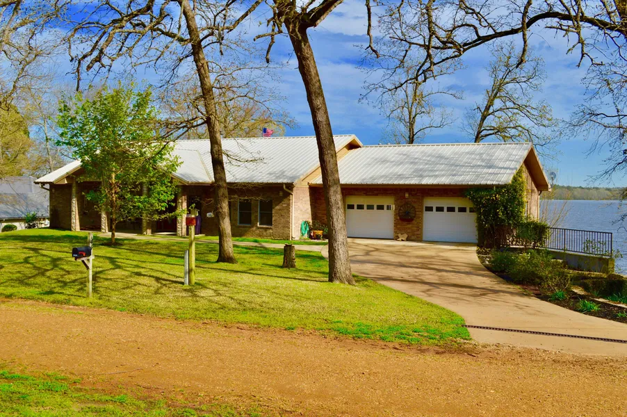 Sitting on two lots on Houston County Lake, this four bedroom, two and one-half bath home has so much to offer! The framing is all metal and built to last! It has a lifetime metal roof and three large porches with awesome views of the lake! The exterior of the home has rock and brick that looks great! The main floor of the home has a large dining room that the owner is currently using as a game room. There is an office, large living with fireplace, open kitchen with granite tops, top of the line stainless appliances, pretty back splash and cabinets, and a large breakfast area. All of this with a view of Houston County Lake. The sun room is the perfect place for watching the sunrise and sunset over the lake. The master suite has awesome views as well, a spacious bath with double sinks, over-sized tub, walk-in shower, nice vanity area, and a great closet. The half bath serves guests well. Downstairs, you will find great storage, three large bedrooms, and a full bath. This home is loaded with extras, has Pella windows, and the gorgeous red oak floors were milled from the trees that were cut off the lot before building! There is a three-car garage, two driveways, and both lots are bulk-headed. The owner reports very reasonable utility bills. This great property is located right next to the Golden Acres Park area. Come see!
