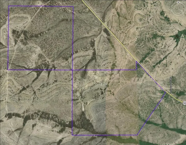 1440 acres (+/-) about 7 miles southeast of Dryden. A little over 1/2 mile of frontage on U.S. Highway 90. Great blue quail country! Whitetail deer and mule deer. Power line crosses the property, which is a pretty rare commodity out here! Good place to quarry flat limestone rock for construction, as well. $375 per acre.