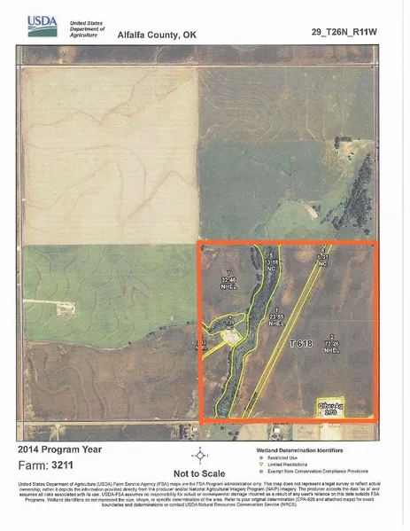 Farm #1 (SW/4) & Farm #2 (NW/4): This 320 +/- acres is located from Jct. US 64 & US 281 in Alva, 11 miles north on US 281. It is comprise of productive cropland, a timber lined creek, & grass pasture. This half section will definitely hunt and is an excellent livestock/sm. grain producer. According to the Woods Co. F.S.A. there are 194.15 acres of cropland (there appears to be approx. 70 acres of cropland on the SW/4; & appears to be approx. 125 acres of cropland on the NW/4). Principle soil types of the cropland include Reinach very fine sandy loam, Class I; Grant silt loam, Class II; & Burford silt loam & Hardeman fine sandy loam, both Class III. Improvements include a windmill & water well on the NW/4. Be sure to take a look! 2013 Taxes: were approx. $783.00 Legal Description: W/2 of Sec. 30, Twp. 29 N., R 13 W.I.M. Farm #3: This highly productive farm is located 1 mile east of Farm #2 OR 12 miles north of Jct. US 64/US 281 in Alva, then 1 miles east. According to the Woods Co. F.S.A. there are 157.34 acres of cropland. Principle soil types of the land are mostly Bethany & Pond Creek silt loams, both Class I; with lesser amounts of Pond Creek silt loam, Class II & Grant silt loam, Class III. 2013 Taxes: were approx. $609.00. Legal Description: SE/4 of Sec. 20, Twp. 29 N., R 13 W.I.M. Farm #4: This farm is located 1 mile south & 2 miles east of Farm #1 OR 10 miles north of Jct. US 64/US 281 in Alva, then 2 miles east. According to the Woods Co. F.S.A. there are 128 acres of cropland. Principle soil types of the cropland include Grant silt loams, Class II & III; & Burford silt loam, Class III. The balance of the land is in timber and grassland. 2013 Taxes: were approx. $427.00. Legal Description: SW/4 of Sec. 33, Twp. 29 N., R 13 W.I.M. Order of Auction (Woods Co. Farms): Farms #1 & #2 North & South quarter will be offered separately, then together. Auction company expressly reserves the right to re-open bidding on each quarter until such time as all biding has ceased. Farms #3 & #4 will be offered individually only.