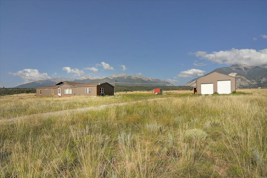Spacious home on 40 acres with detached 1440 sf metal pole barn/RV garage/workshop and extraordinary 360 views of the Chalk Cliffs, Mt Princeton, Buffalo Peaks and down valley. New roof on house in 2021 and 8 new Anderson windows installed in 2018. Main floor living has vaulted ceilings and ideal floor plan. Private Master bedroom is off the primary living room and has a remodeled full bath with beadboard wainscoting and soaking tub. Plenty of room to accommodate others with 2 additional bedrooms plus an office and 3/4 bath at the south end of the home. Centrally located kitchen offers full size dining area, breakfast bar and lots of cabinet storage. Main level of the site built addition features a Lopi wood burning stove with artistic metal surround and offers lots of flexibility as a second living room or studio with stairs down to the partially finished basement. Sizable 48 x 30 metal detached barn has electricity, concrete floor, insulated ceiling and 10' and 12' doors. Solar panels are owned by Seller and are included in the sale. Domestic well allows for household purposes inside 3 single family dwellings, irrigation of not more than 1 acre of gardens/lawns and the watering of domestic animals.