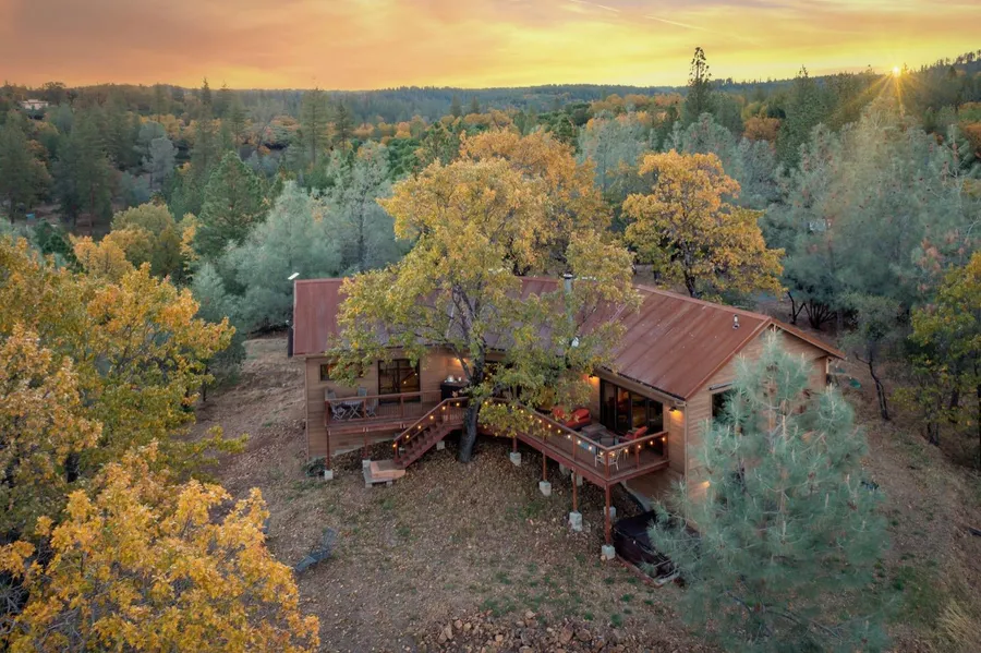 Unique opportunity to live with views of the Yuba River and sweeping vistas from the Coast Range to snow-capped Sierra peaks! Custom built and never before on the market this home captures the essence of Nevada County living. Absolute privacy and newer construction with attention to detail throughout. Wake each morning in the primary bedroom with sunrise mountain views; radiant floor heat in primary bath. Open concept kitchen with granite counters and walk-in pantry. Engineered wood floors. Downstairs has two bedrooms and a full bath. Enjoy a hike on your 37+ acres that borders state and federal land with two seasonal creeks and abundant wildlife, then relax with a soak in your hot tub overlooking the river. Ground-mounted solar array with Tesla whole-house backup batteries and car charging station. The land offers multiple building sites for an ADU, barn, or shop and plenty of areas to garden. High-speed internet options including Starlink makes working from this sanctuary a breeze.