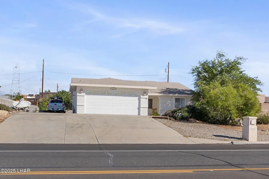 This inviting home is perfect for embracing the Havasu lifestyle. It offers 3 bedrooms, 3 bathrooms, a 2-car garage with 29 feet deep bay, and plenty of side parking. The exterior has been freshly painted, and a new roof was installed in November 2025. The spacious living room features vaulted ceilings, creating an open atmosphere that connects seamlessly to the casual dining area and kitchen, equipped with natural gas cooking, built-in appliances, convenient breakfast bar and whole house water filtration system. The split floor plan provides a master suite with a walk-in closet, patio access, and separation from the other guest rooms for added privacy. Enjoy a covered patio, solar-heated swimming pool, productive lemon trees, and a large yard that's perfect for storing recreational vehicles and toys. The approximately 25+ foot side yard includes full RV hookups and additional ample side parking on the opposite side. A permanently installed generator is also provided to supply power to the entire house as required. Don't miss this fantastic home with excellent features and amenities! Please excuse the moving boxes, as the seller is preparing to relocate.