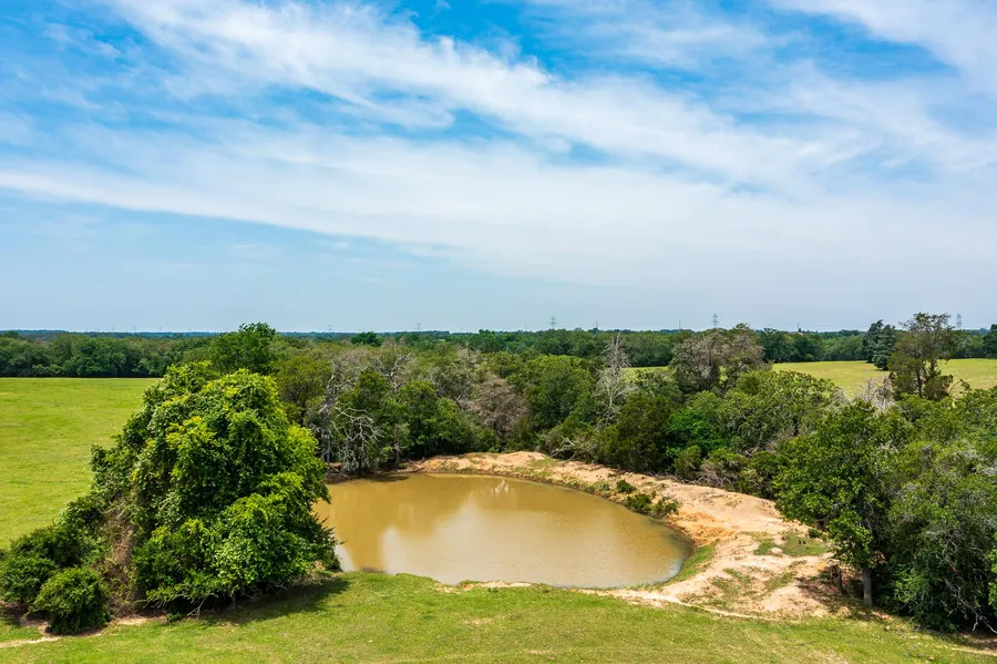 The ranch is well-suited for cattle grazing and hay production, with improved grasses throughout and well-placed stock tanks providing reliable water for livestock and wildlife. Scattered mature post oaks and yaupon thickets add character to the landscape, offering shade, privacy, and excellent wildlife cover.