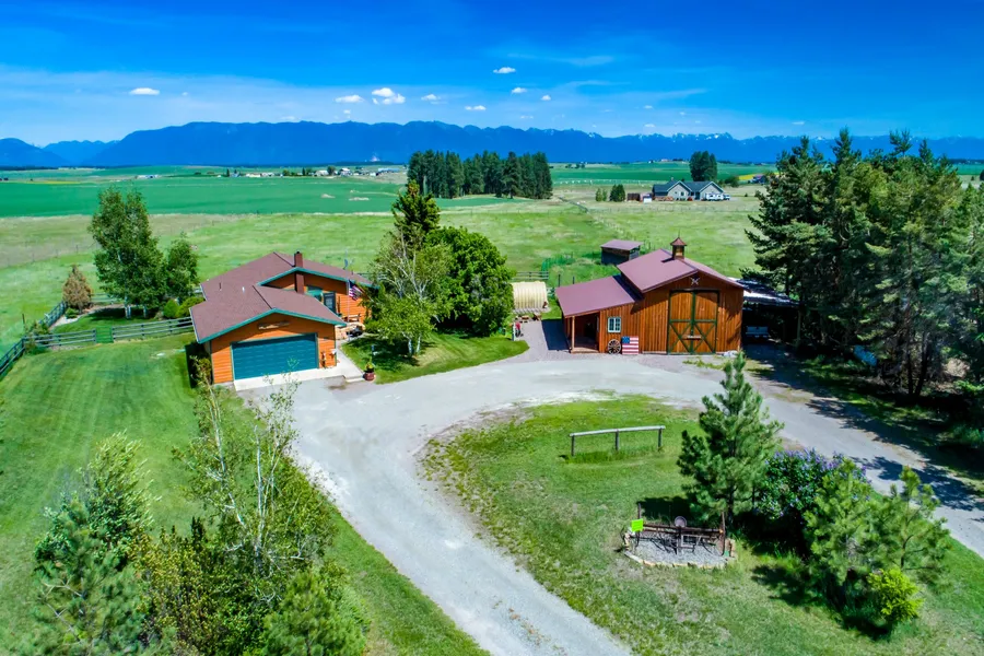 Classic country home resting on 5 acres in West Valley. The home has 2360 sf with 2 bedrooms, 2 bathrooms, office, 2 separate living areas, main level living and master, with an attached oversized 2 car garage. The living area opens up to an elevated deck with sweeping views from Big Mountain & Glacier Nat'l Park and south to Blacktail. Mature landscaping accents the property. Hone your horticulture skills in the greenhouse. The Barn has a finished out room for your tack or gear and plenty of room to house several livestock or safekeep your RV and boats.
