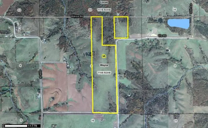 145.25 acres m/l in Wayne County. High productive soils are on this farm with many acres at 60 CSR. Farm currently has 104.3 acres in CRP paying $74.50/acre through 2012 for an income of $7,770. Farm income will double based on current rents for soil types on the farm. Farm would include 127.25 acre parcel & 18 acre parcel ; the combined parcels would have 118 acres of tillable land. Based on $150/acre rent this farm would have $17,700 income. Farm would be a good hunting farm with excellent income or you could increase the income on the farm by leasing out the hunting rights on the farm. Buy now and increase your equity with rent increases for 2013.