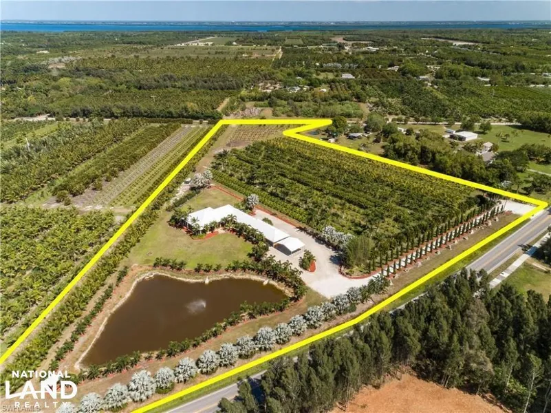 Estate home on 9.8 acres with a producing and marketable tropical PALM GROVE. at the North end of Pine Island . The beautifully landscaped "Private Driveway and Gate" enters into this tropical paradise.. Full hook-up RV parking spot, 4- carport spots - 4 car garage and large work-out bonus room with central AC and Hobby room all attached to the Large Florida CBS home with wraparound screened porch and Huge Spa. Great living area with attached Den and 1/2 bath and the fabulous views of the manicured landscaping, large pond and fountain gazebo. Large Kitchen is perfect for the Chef and family, Stainless Refrigerator/dishwasher and compactor and a walk-in pantry. Large Master Suite also leads to the Den, Master Bath and shower is "to die for" His and Hers closet has solid wood professional closet system The second and third bedrooms are well designed and spacious. The grove is professionally designed, well, drip irrigation, laser leveled with very valuable and saleable palm trees. Listing provided by: Century 21 Sunbelt Realty