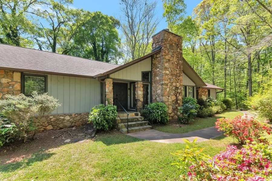 Fantastic Contemporary style home on 1.627 acres in beautiful Smoke Rise with a full basement! Add a little elbow grease, a few updates and new carpet and it will be absolutely Stunning! As you walk through the gorgeous front doors you're greeted by the sundrenched open floor plan with vaulted and beamed ceilings, stone fireplace, expansive living areas, separate dining area plus a breakfast room with a built in desk that opens to the kitchen. The wide galley style kitchen has double ovens, separate cooktop, a pantry and tons of counter space. Step out to view the private wooded backyard from your choice of the vaulted sunroom or the screened in porch. Truly so much entertaining and living space in this home. The very unique and oversized master suite has a walk in closet and 2 full bathrooms, yes, 2 complete bathrooms! Talk about ahead of their time back in the 70's. 2 additional bedrooms on the main are ample sized with large closets and access to the hall bath. Finished 4th bedroom/recreation room with full bath is located in the huge daylight basement with 2 patios, an additional garage, a workshop and plenty of other areas to add your finishing touches to. Kitchen level 2 car garage, tons of parking and room to turn around. This is a fun one!