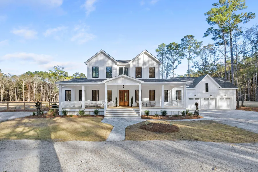 Estate Gates at Serenity Pond.... a peaceful escape into country living located on John's Island, not far from downtown Charleston. A private gated 60+ acre tract of land with a 5-bedroom/5.5 bath new construction custom home, three-car garage, and a 2 bedroom/2 bath guest suite on a manicured open area with a large pond just out your back door. Walking through the front door of the main house you're greeted with an open concept; Living room, kitchen and dining all overlooking the screened-in porch. Sunrises over the serenity pond greet this picturesque back yard. Primary bedroom is located just off of your living area with en suite bath and massive walk in closet. An office, guest room with en suite bath, laundry room, and full pantry round out the main level. Upstairs, you will find two bedrooms that share a hall bath, as well as the fifth bedroom with en suite bath. The detached three car garage sits just off the rear entry to the main house. A spacious two bedroom/2 bath apartment suite is located just above the garage with separate entrance. Perfect for family, Guest or others to enjoy. The wooded grounds allow for a recreational paradise.