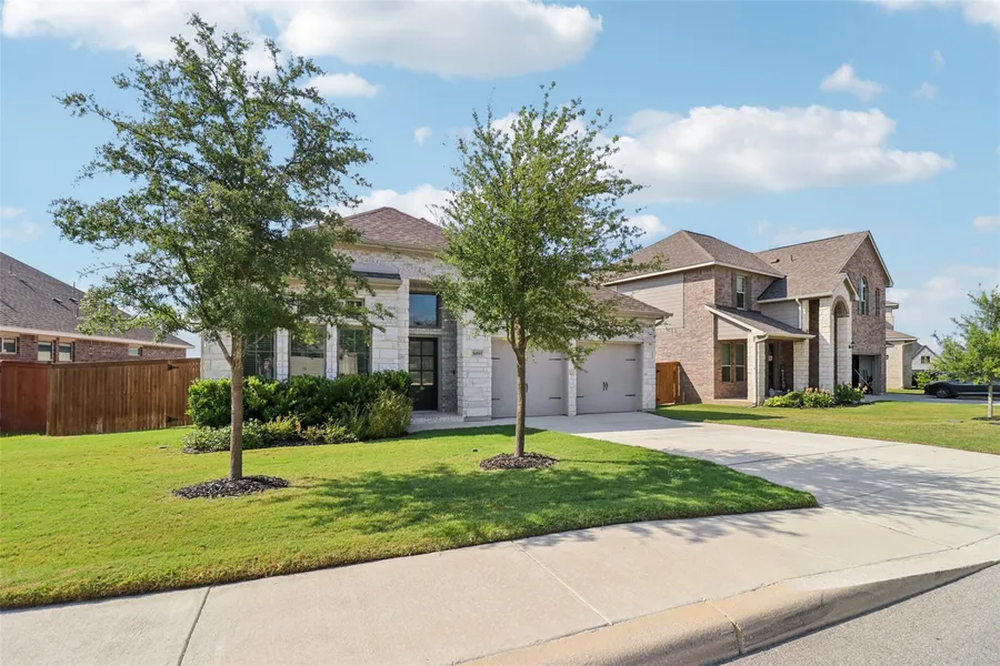 Welcome to this stunning, like-new Perry Home in the highly sought-after gated community of Ladera. Offering 4 spacious bedrooms, 3 full baths, plus a functional study, this home features an open-concept layout bathed in natural light, lofty ceilings, and stylish finishes throughout. The chef's kitchen boasts a generous island, sleek countertops, and included appliances. Relax in the primary suite with a luxurious ensuite bath, garden tub, walk-in shower, and dual vanities. Outside, enjoy privacy and sweeping views from the extended covered patio—no backyard neighbors. Additional highlights include energy-efficient features, upgraded tile in the master and office, outdoor lighting, and an entertainment center with an electric fireplace. Situated just minutes from Highway 90, Lackland AFB, and Citibank’s operations center, this home blends upscale comfort with unbeatable convenience. Described as the “most beautiful and popular PERRY HOME floor plan in Ladera” with 4 bedrooms, 3 full baths PLUS a study Features include like-new condition and prime location — top of a hill offering amazing views, high privacy with no backyard neighbors, and proximity to Highway 90, Lackland AFB, and Citibank