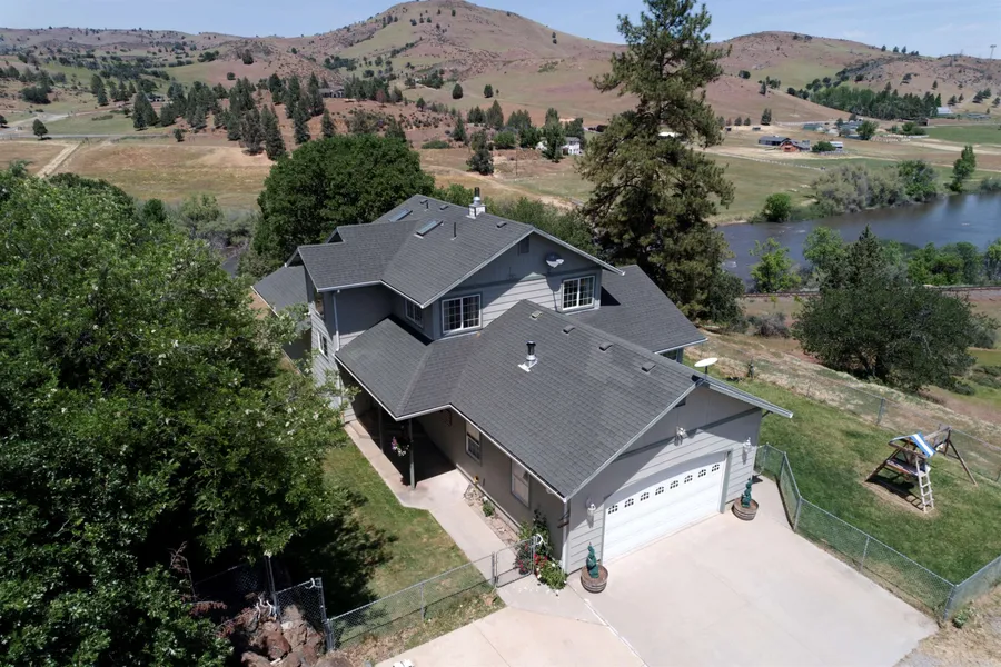 Welcome to The River house on Rainbow Street! This single-owner home was custom designed for river views & vistas from every angle! Upon entry, you'll be captivated by this elegant home featuring 4 bedrooms, 2.5 baths, a private office/den in a spacious floor plan! Enjoy central heat/ac & custom amenities in the open floor plan allowing a seamless flow between the living room, dining area, & kitchen to the deck- Perfect spaces for entertaining or enjoying quality time! The main level primary suite has private access to the scenic deck with 3 bedrooms & full bath upstairs. Skylights & window placement add more elegance to the property and AMAZING VIEWS! The exterior features are just as impressive with a 2-car attached garage (finished), detached workshop, woodshed and full RV hookup providing ample space for parking & storage. Situated just 4 miles from Interstate 5 access- easy commutes to Yreka or Oregon! Take advantage of this rare opportunity to own a property that combines stunning river views, elegant living and convenient access to outdoor recreational life! Schedule your viewing today!