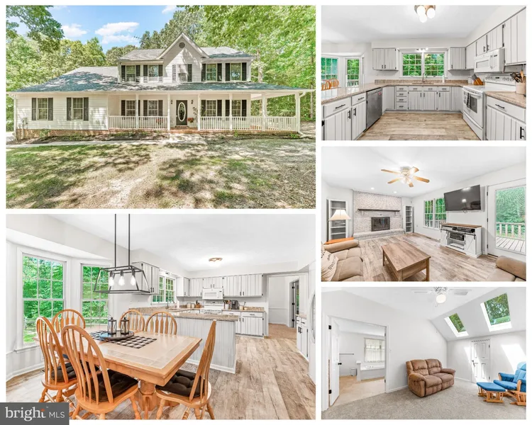 CHARMING 4 bedroom 2 1/2 bath Colonial w/ a Wrap Around Porch and DECK located in Bryantown Estates subdivision in Hughesville at the end of a private cul de sac. This gorgeous home is situated on over 1.6 acres with a fenced-in backyard. Enjoy your morning beverage on your large front porch or out back on your huge deck surrounded by nature! With plenty of parking and a large 2-car garage, a large flat yard and a newly renovated kitchen, this property is an entertainer's dream! The entry foyer enjoys HARDWOOD Floors, offset stairs to the second floor, a large office to the left, and your formal living room to the right. A formal dining room is settled in behind the living room. Enjoy open concept living with the large kitchen is open to the breakfast area and Family room with its own fireplace. The kitchen cabinets have been freshly painted, new granite countertops installed, as well as new hardware making this kitchen a beautiful space to entertain and cook. As you move to the 2nd floor, enjoy the NEW CARPET up the stairs and in each of the 4 bedrooms. The Primary Suite includes a sitting area, lots of closet space, and massive primary bathroom with a jetted tub, a new vanity and faucets, double sinks and a separate shower. The 3 additional bedrooms share a large 2nd full bathroom in the hallway with updated vanities, granite countertops and faucets. MAKE AN APPOINTMENT TODAY! THIS LISTING WILL NOT LAST!