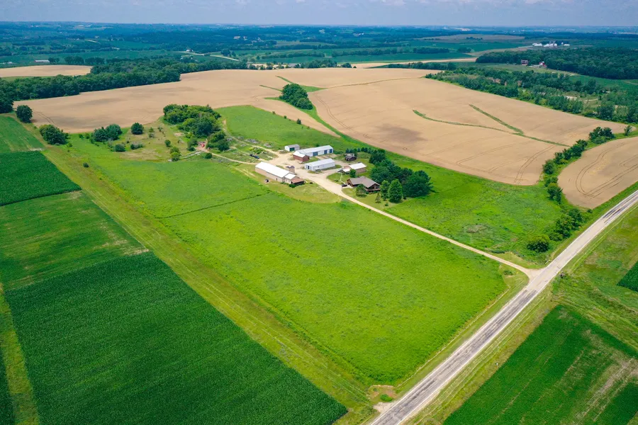 Sitting north of Durand, this property is a perfect mix with a lovely ranch home, multiple outbuildings, and acreage currently enrolled in CRP. The home sits nicely off the road with beautiful views of the countryside. The three bedroom, 2 1/2 bathroom ranch has an open floor plan on the main level. As you enter the home, you are greeted by a good-sized kitchen with bar seating and tons of cabinets. The kitchen opens into the dining area and flows into the living room. Off the living room is access to the sun room and a slider onto the deck, the main bedroom with a main bathroom. There is a large laundry room/mud room off the garage area and a half bathroom. Downstairs is a large rec room with a walkout sliding door. This could also be converted into another kitchen and an in-law space. Two good-sized bedrooms share a full bathroom. The roof of the home was replaced three years ago. Continuing up the lane, you come to the 42 x 114 main building and office. An air-conditioned office off the front is a perfect space for someone to run their business, hobby or apartment out of. The office has its own full bathroom, open flow on the main level, a loft above, and a basement for additional space that could be finished. The 42 x 60 climate-controlled section has heated floors with its own wood boiler, a supplemental furnace, insulated doors, and 3 phase electric, LG compressor with lines running around the perimeter. Attached to that building is an additional 42x54 cold storage with its own door. Behind the house is the 36x36 shop. The shop has concrete heated floors with its own wood boiler, generator, compressor, car lift, large metal racks for storage and two overhead insulated doors. This building has additional office space or party room off the side. Up the hill you have a 36 x 75 insulated building with concrete floors and sliders on each end. A 36 x 65 cold storage building with a lean on one side that has 3 different sections. Additional buildings for storage on the property that could be rented out if not in use. The 16.77 acres +/- of CRP provides additional income, mowed paths for walking, and spring on the east side of the property. On the west side of the property, you have some timber, tillable, and open area not enrolled that could accommodate food plots, hunting opportunities or room to fence off for livestock.