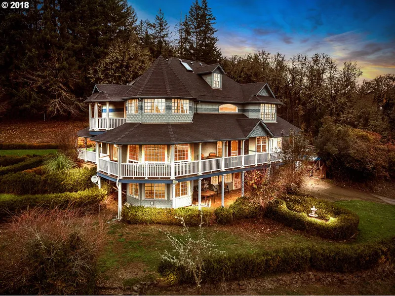 Victorian(1995)on private 10 acre at the end of road. View. Beautiful cherry wood staircase. Remodeled kitchen incl granite cntrtops, SS appl, new hardwd flrs, pantry & butler's pantry. Master w/private deck perfect for relaxing. Lg living rm, family rm, formal dining, parlor & library. Lower level w/2 bedrms, hobbie rm/office, kitchen & living rm great for dual living. New roof. Shop & Barn. And a secret rm! Easy commute to Portland!