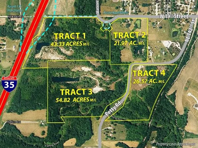Research Parcel InformationI-35 N. to 92 Hwy (exit 26), right to first right (just before Quik Trip), continue right on Watson Dr. to 144th St./19th St. and land is on south side. Watch for signs.