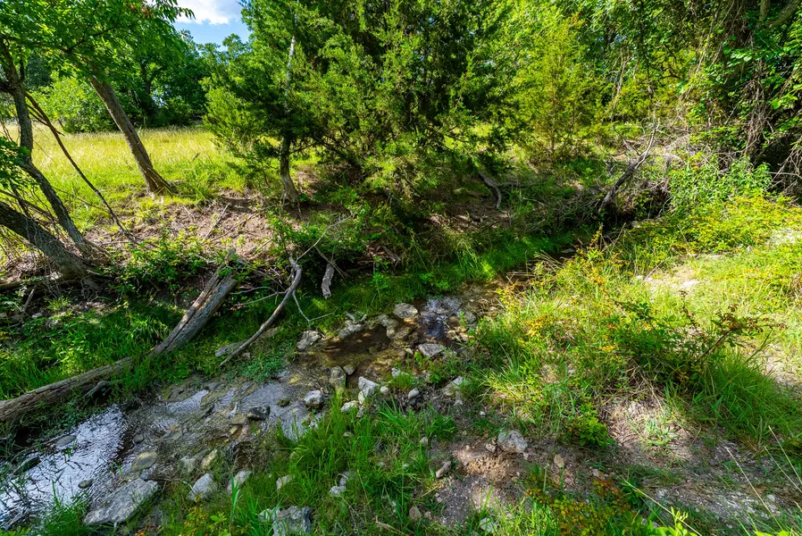 The property includes gently rolling terrain with a mix of pasture and scattered hardwoods. Three natural springs feed a creek that runs along the back portion of the ranch, providing reliable water for livestock and wildlife. A small pond is located near the front of the property. The ranch has a high point providing scenic views and several ideal build sites. There is an active grazing lease on the ranch.