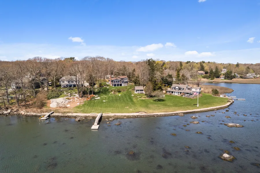 Direct Waterfront with Private Dock. Welcome to your dream waterfront retreat high and dry with stunning water views of the Mystic River to Masons Island and beyond. This 2,507 Square Foot tri level contemporary boasts Three Bedrooms with Two and one half Bathrooms and is nestled on 1.045 acres with 97 feet of waterfront and a spacious 27' x 8' deck for watching the boats sail by. The open floor plan allows for seamless flow between the living, dining and kitchen areas. Oil Hot Water heating system. Central Air Conditioning with mini-splits on 3rd floor. Natural light floods the space through large windows offering unobstructed water views. Conveniently located between Historic Downtown Mystic and Historic Noank Village. Custom renovation by this owner and first time listed for sale since 1994. Vacation at Home!