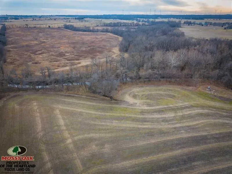 Multiple locations on this farm will be ideal for food plots. Two pockets in the CRP are set up great to put in kill plots with multiple stand locations. A hidden 2 acre pocket of the tillable ground is also prime for a destination food source. This area of the field has a grown up water way on the north side and the mature timber of the creek on the south. Setting up blinds and stands around this pocket will be easy and with a destination food source in place there will no doubt be numerous animals pile into this field. The hidden pockets and mature sycamores along the creek will provide quality turkey habitat as well. With the Neosho river just 2 miles away this farm also has the potential to be developed into a waterfowl spot as well. The farm offers several revenue streams for the owner. 55 acres of Dennis and Verdigris Silt Loam soils are in production and are currently on a 1/3 share to the landowner. A producing gas well on the north end of the farm, CRP and a wind lease all provide additional income off the farm.