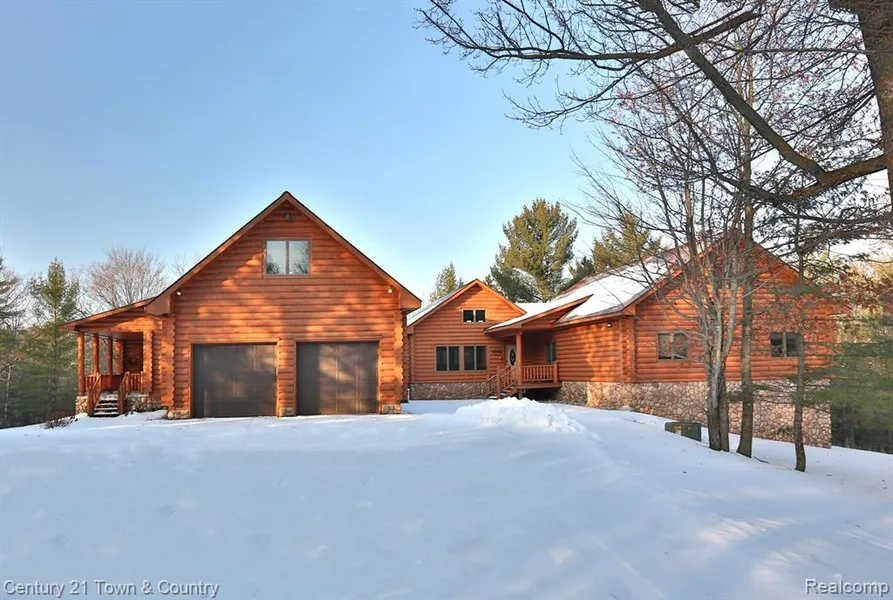 The most remarkable customized premium built full-log home (lodge on 80 acres) that is contiguous on 2 sides by DNR property(80 acres and 160acres). It is offered fully furnished including, all furnishings, dishes and most small kitchen electrics. Custom hand-made lighting fixtures/furniture. New wing built in 2012 from 3600 sq.ft to over 11,000 sq.ft. which includes walk-out basement. Heated Pole barn(48 x 34) w/work shop. Private 100 yard shooting range on property, hunting blind and stands, many trails and multiple food draws, ideal for the avid hunter and outside enthusiast. Dedicated Fire-pit w/surround. Short distance to Perry Lake(canoes, kayaks and bikes neg).Third Floor Loft areas: living room area with built-in bookshelf, game area, office/bedroom, full bath. So many awesome features to enumerate: It must be seen to grasp the beauty offered at such an undervalued price. Owners are relocating.
