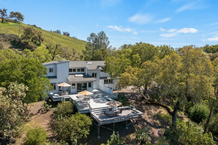 Serene Wine Country Estate. Natural beauty surrounds this truly peaceful and private 47± acre sanctuary offering mesmerizing panoramic views, gracious home with living room, large multi-purpose room, and a walk-in shower in the primary bathroom. Enjoy the remodeled kitchen, hardwood floors, large deck, spa, and argon-filled double pane windows. In addition to the main house, there is a detached garage/workshop and a large detached two-car garage. 2± miles of maintained hiking trails, majestic oaks, expansive meadows, cascading seasonal creek, and knoll-top picnic area with views of Alexander Valley vineyards. A truly exquisite property.