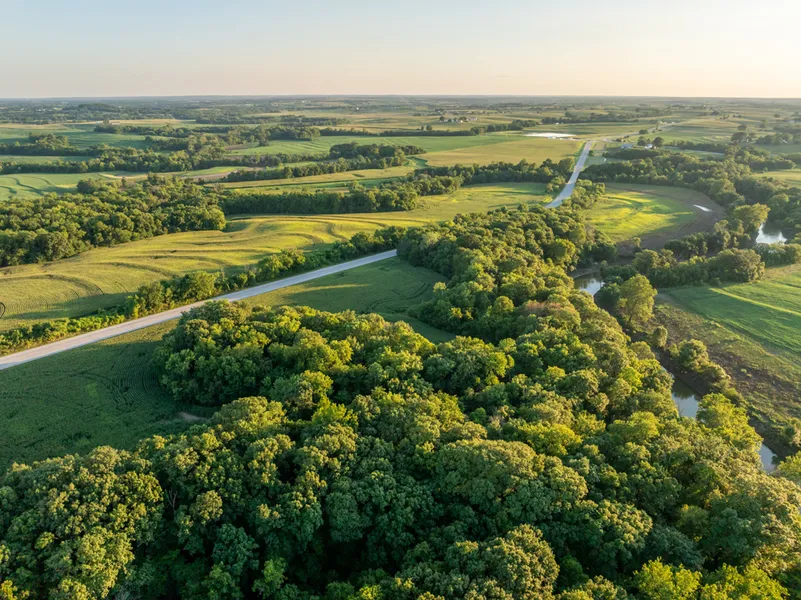 This farm contains most of those features and is set up to be so much more. Located just outside of Wellington, Missouri, these 87 +/- acres consist of 52 +/- tillable acres, currently in corn. The Sni-A-Bar Creek, which is a direct tributary to the Missouri River, is the western and northern boundary of the farm for over 1.1 miles. The fishing opportunities and beautiful views that the creek provides are a great bonus. Along the creek and nearly the entire perimeter of the two tracts is treed. With a large area on both tracts available, the mature timber provides a great habitat for wildlife to live and venture across the land. With nearly 30 +/- acres of trees on the property, the opportunity of harvesting some for income is there along with the ability to use these areas for the secluded building spot so many are after. The two tracts are split by US Highway 24 running east and west nearly through the center of the 87 acres, providing highly desirable highway frontage to the tune of over 3,000 feet on the north tract and over 3,200 on the south tract.
