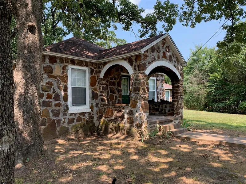 Come Home to this vintage stone home tucked in the tall trees on a 5+ acre piece of heavily wooded land. Great for your horses with a vintage barn with two corrals. Inside, the home is quaint and functional with original hardwood floor in the main house and stained concrete in the addition. The large master is separate from the other bedrooms. A private bath and an office area complete the area. Outside of the master, there is a large laundry room. The kitchen and dining area are separated by a tall counter area. The owners also own the 2 acre property next door with a small house, which is being sold as well - MLS 14646676. These two properties sit between two developments. Great area to call HOME!