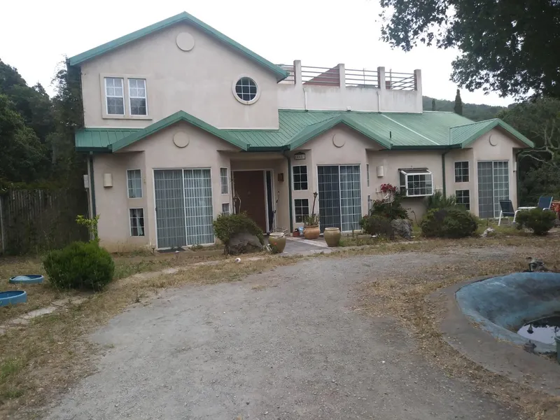 ESTATE IN THE FOREST This modern, two-story, designer home by one of the Bay Area's pre imminent architects sits on 5 acres of moderate-sloping, Oak Forest and offers views off its roof-top observation-deck of a forest canopy stretching out past Moss Landing all the way to Monterey Bay. The 3 bedroom, 2 1/2 bath home with the master BR on the main floor is approximately 2,900 Sq. Ft. of pure luxury, featuring hand, painted tile floors interspersed with beautiful hardwood along with a copper treated wall leading up to vaulted ceilings lined with huge open beams. It's kitchen is "state-of-the-art. One bedroom opens onto its own private deck from which a circular stair leads to the rooftop observation deck. The property also has a detached, 3-car garage with additional shop-work space. Strategically located for anyone pursuing an easy commute to Silicon Valley, Monterey or Santa Cruz. This home is a "work of art" with true privacy, yet easy access to the amenities of civilization,