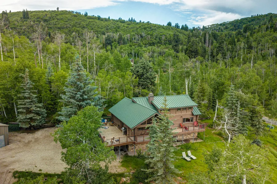 Nestled on approximately 12 acres of breathtaking mountain slope, this enchanting log cabin is a nature lover's dream come true. Surrounded by majestic Aspen and pine trees and abundant wildlife, the property offers a serene and picturesque retreat from the hustle and bustle of everyday life. With a spacious floor plan and a huge toy garage, this home combines rustic charm with modern convenience. The expansive deck space provides the perfect setting for outdoor gatherings or simply sitting back and enjoying the stunning vistas of the surrounding mountains. The property doesn't just stop at the cabin's threshold - the vast exteriors take full advantage of the panoramic Mountain View’s, inviting you to explore and connect with nature. With plenty of land for fun activities, your imagination is the only limit when it comes to outdoor recreation and enjoyment. Conveniently located less than 20 minutes from Park City via a paved road, and only 5 minutes from the highway exit, this mountain retreat strikes the perfect balance between secluded tranquility and accessibility to the Park City amenities.