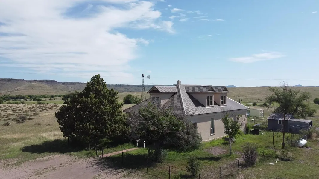 Home On The Range - The adobe home is two-storied in classic country ranch style with an inviting front porch. It has 4 bedrooms, one bath, covered wood floors and high beadboard ceilings. The original gas light fixtures have been converted to electric. The home is heated by a wood burning stove and several propane gas furnaces throughout the home. One window a/c unit is utilized when cooling is rarely needed. A formal dining is central to the house and the large kitchen has been recently updated with new cabinetry and appliances. The home is also sporting a new metal roof, fresh stucco and surrounded by decorative and pipe metal fencing.