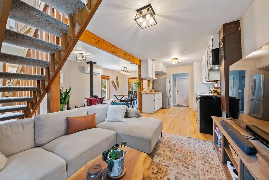 Rustic, charming mountain living, in south Evergreen. This lovely, updated home sits on 1 acre in the Brook Forest Estates neighborhood and feels like a tranquil getaway. Located on a county-maintained road, the property features a fenced yard and an oversized, heated 2-car garage. The entryway has been recently renovated with new flooring and an attractive built-in bench/storage area. The open floorplan of the main level kitchen, dining and living room are accentuated by a rustic wood accent wall, modern light fixtures and a Vermont Castings wood burning stove. A fully-renovated primary bedroom & bath is located on the upper level and walks out to a lovely sunroom. Two non-conforming bedrooms, one on each floor, could be used as sleeping areas, office space, yoga studio or more. The upper level non-conforming room has been recently updated with new flooring and doors, and the lower level room has new laminate plank flooring and walks out to the side yard. Enjoy the outdoors from the comfort of the partially covered composite deck at the front entry. Four energy-efficient, remote controlled mini split heating/cooling units are located in the primary bedroom, multi-use rooms, and living area. The home features a propane tankless water heater, and the washing machine has been equipped with a new pump and supply valve. Other details of the home include a full-house Generac generator and two propane tanks - one for the home, which is owned, and one for the generator, which is leased. Working from home is a breeze with Starlink high-speed internet service.