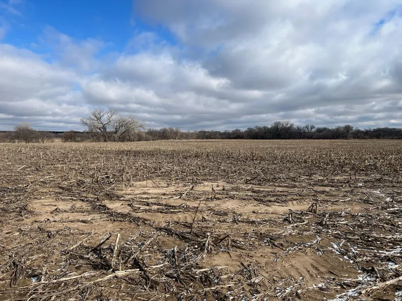 Farm consists of good quality dry cropland that is bisected by a rail line of the Burlington Northern Railroad and heavily wooded Mud Creek.