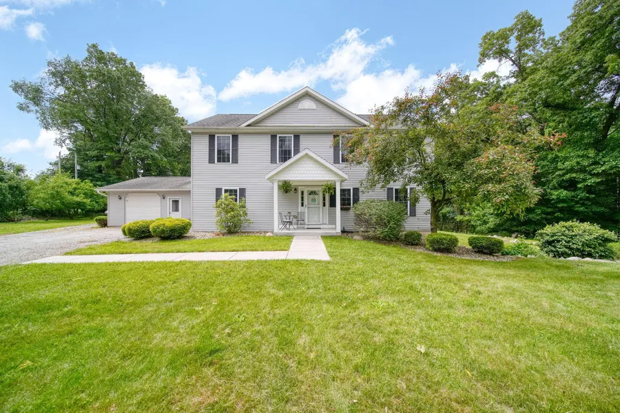 Enjoy summer in your new home, with 4 bdrms, 2.5 baths, a beautiful country property with 2.53 acres, and a gorgeous inground pool ready to go! Unbelievable private setting, surrounded by woods, trees & farmland just beyond the woods. This home is turn key, ready for you to move right in, with over 3000 SF of finished living space, there's plenty of elbow room. Remodeled and added on to in 2006, this home has been impeccably maintained, with the pool added in 2012, it's been a delight to the owner for many years. Spacious, open Kitchen/Dining & Living Area, Corian counters, attractive wood flooring, pellet burner in the kitchen can ''cozy up'' a chilly night in a short period of time. All bdrms on the 2nd floor, with 3 rooms having brand new carpet. The Primary Bdrm suite offers ample space, a large walk-in closet, and spacious bath w/glassed in shower. Peaceful views of the well established & landscaped lawn from all rooms, plus the finished lower walkout level is a plus. Insulated pole barn offers extra parking/storage space, plus room for a workshop. This home will definitely satisfy!