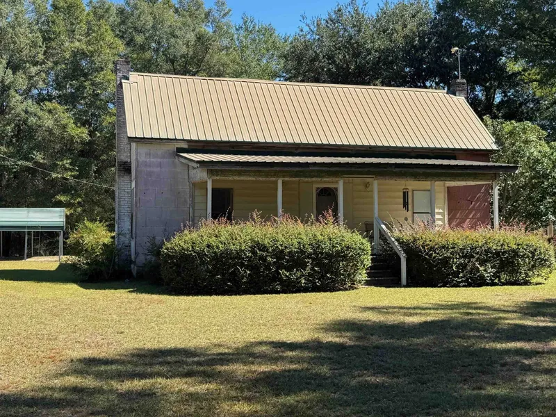 Vintage farmhouse sitting on 3 peaceful acres surrounded by tall oak trees. The house has had some updates and some work started and not completed so bring your hammer and paint brush and make this farmhouse your own. There is a room upstairs that has been plumbed for a bath but never completed. The kitchen has nice cabinets with butcher block laminate tops and includes appliances. The house features a large dining room, a breakfast area and living room along with a large upstairs pantry/storage area and plenty of bedrooms. The back deck has been updated with the trex type boards that outlast wood. There is an open carport on the property, storage building & shed. County water is hooked to house but there is a well also.