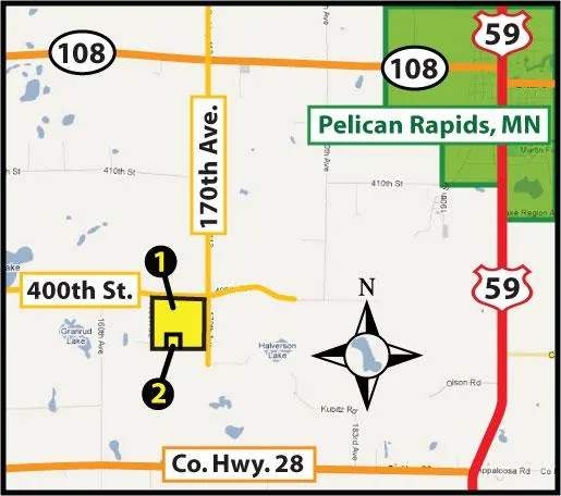 Research Parcel InformationDriving Directions: From Pelican Rapids, MN: Drive west on HWY-108 to 170th Ave. Proceed south 2 miles to 400th St. and then proceed west ½ mile. This will place you at the NW corner of the property.