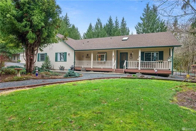 Meticulously maintained custom home on 5 acres in the Adna area. Tucked away in a beautiful private setting amongst the evergreens. Great room concept with split bedroom floor plan. Vaulted ceilings, skylights, surround sound, wood stove, heat pump, air conditioning, kitchen with quartz counters, eating bar, and propane range. Master bedroom with en-suite bathroom, jetted tub, glass shower, double sinks, and walk-in closet. Large covered deck with speaker system is perfect for entertaining and leads to back yard with fire pit and bocce ball court. What more could you ask for? How about a 30x30 attached garage as well as 2 shops! Newer roof on house and shops, wired for generator, RV parking with electrical, garden space and fruit trees.