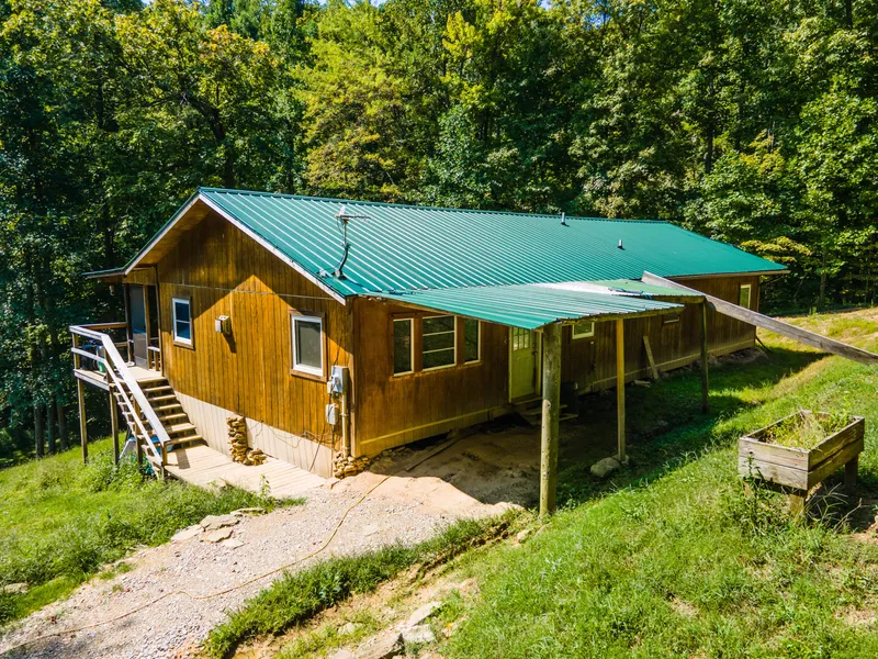 Welcome nature lovers!!!!! Welcome hunters!!!!!!! This 3 bedroom, 2 bath ranch is located on 95 acres of wooded land. Come explore your own personal cave and play in the many creeks. Screened in back porch looking over the wooded acres. Hardwood and tile floors throughout the house. A lot of turkey and deer on this property. 1 acre cleared sight for potential new home build that has water, electric, and septic tank already placed. Septic tank has never been used. Beautiful view in the fall! Pictures of the fall trees included!