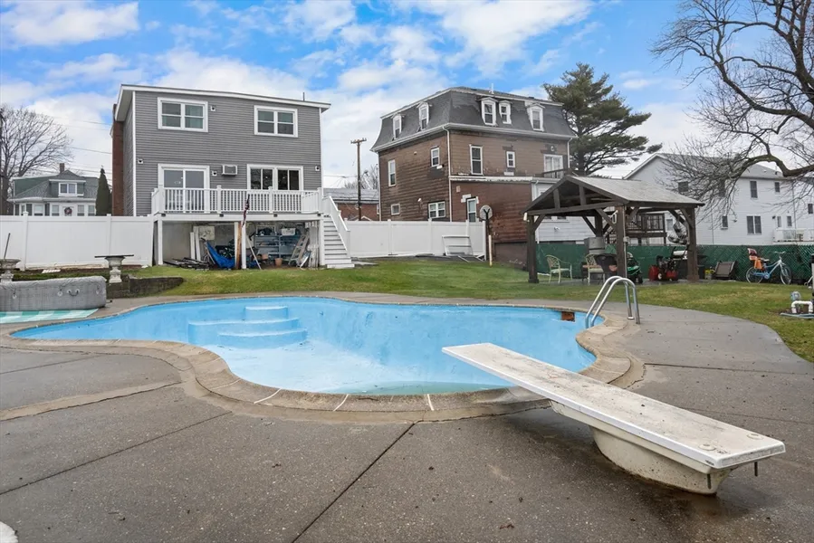 $$$ HIGHEST aND BEST OFFER TODAY UNTIL 6 PM $$$WEST REVERE . This stunning 3 bedroom, 3 full bath home with a spacious open floor plan. The living room, dining room, and kitchen flow seamlessly together, perfect for entertaining guests. The home boasts hardwood floors throughout, adding a touch of elegance. The finished basement features 3 additional rooms, offering plenty of space for a home office, gym, or media room. With the potential for an in-law unit, there are endless possibilities for this versatile space. Outside, you'll find a pool, patio, and deck, ideal for enjoying the warm summer days. The huge backyard provides ample room for outdoor activities and gardening. Stay cozy in the winter months with a wood-burning stove, adding warmth and charm to the space. With 9 parking spaces on the paved driveway, there's plenty of room for guests to park. Don't miss your chance to make this beautiful property home. . FINISHED BASement